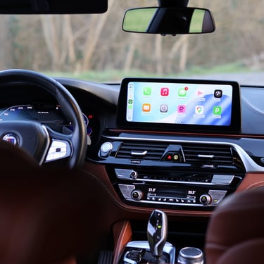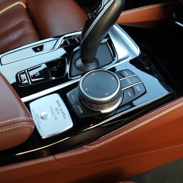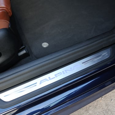 Alpina-specific options including logo on headrest, logo on the piano black trim, full aluminum CNC shift paddles